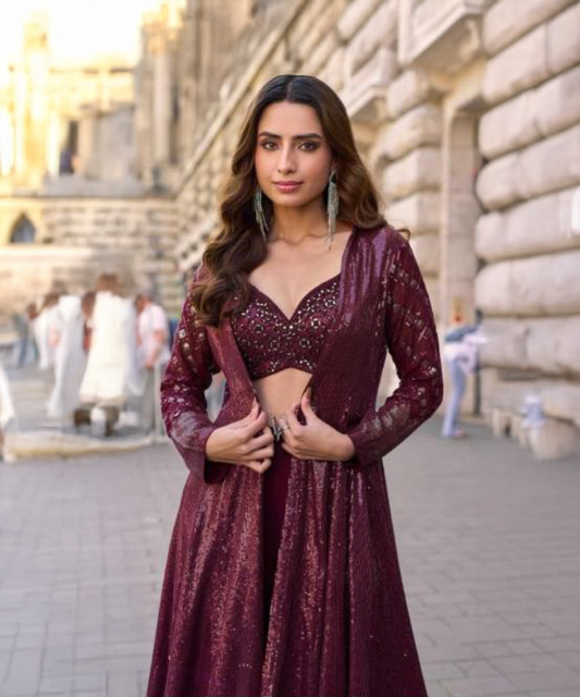 Indo Western Georgette Lehenga in Beere mit Palazzo