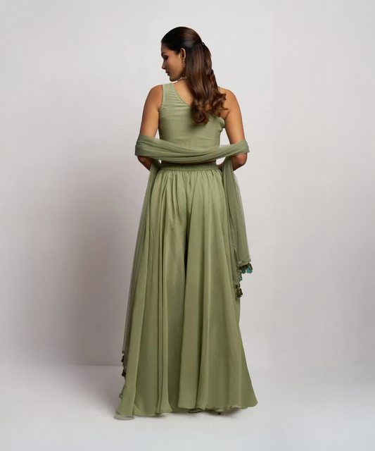 Grüner Lehenga aus Georgette mit Khatli Stickerei