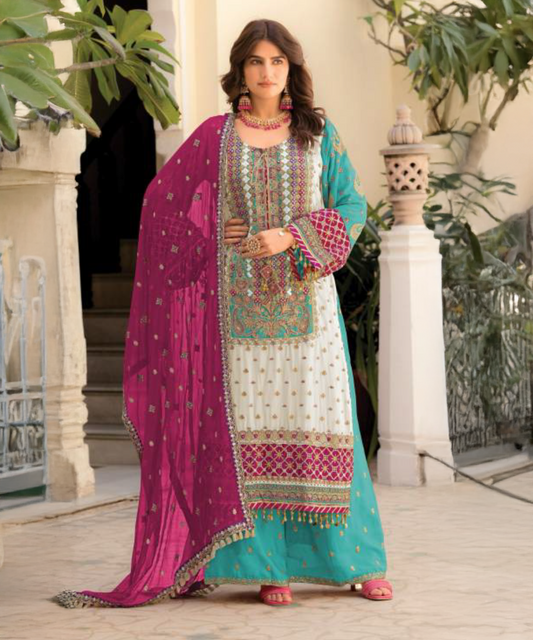Der Salwar Kameez ist eines der vielseitigsten Outfits der indischen Modewelt. Mit seiner Kombination aus langem Oberteil (Kameez), Hose (Salwar) und Dupatta vereint er Eleganz, Komfort und Tradition. Bei Desiwear findest du eine exklusive Auswahl an Designer Suits, perfekt für Hochzeiten, festliche Anlässe oder stilvolle Alltagslooks.
