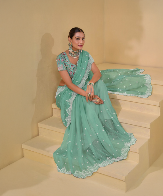 Party Sarees – glamourös mit modernen Schnitten und glitzernden Details.