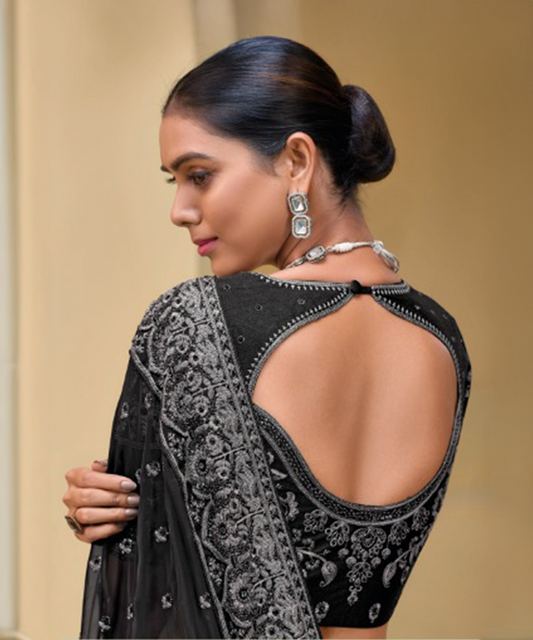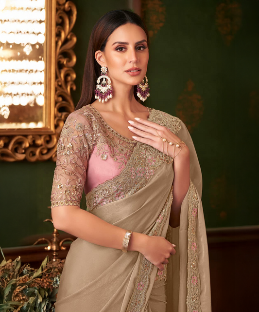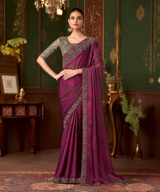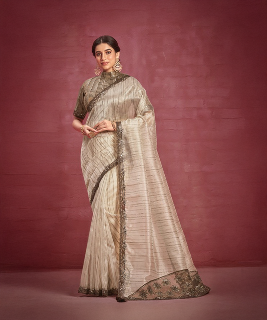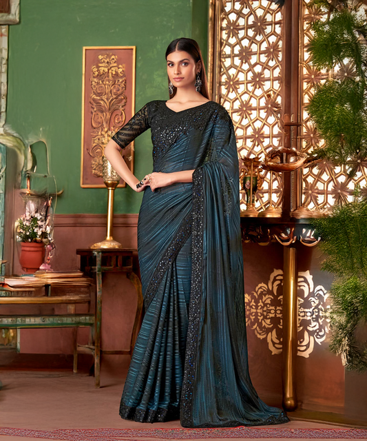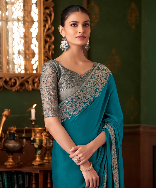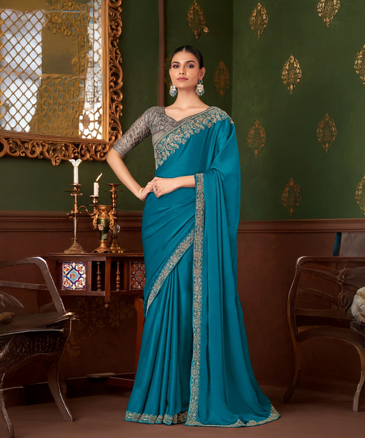 Blue Saree with Traditional Golden Pattern made of Cotton Silk